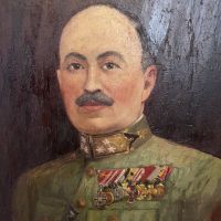 Legújabb szerzeményem, Bartók Bélát elvileg egy tüzér őrnagyot ábrázol barna kistársasági öltözetben, kitüntetéseivel. Ami zavar, hogy a tüzérek skarlátvörös hajtókájának is látszódnia kellene a galléron, de azt a festő úgy tűnik megspórolta. Ha valaki tud bármit mondani az őrnagy úrról, megköszönném!