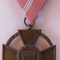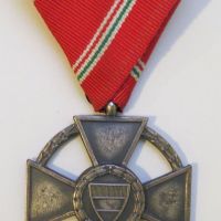 52 mm-es, domborított, egyoldalas kereszt. Hátlapja zománcozatlan, rajta az alapítási évszám és függőleges kitűzőtű van kampóval. Változata: a rátett rendjelvényen a címerpajzs nem zománcozott. Szalagsáv: 15 mm-es, kicsinyített kereszttel.