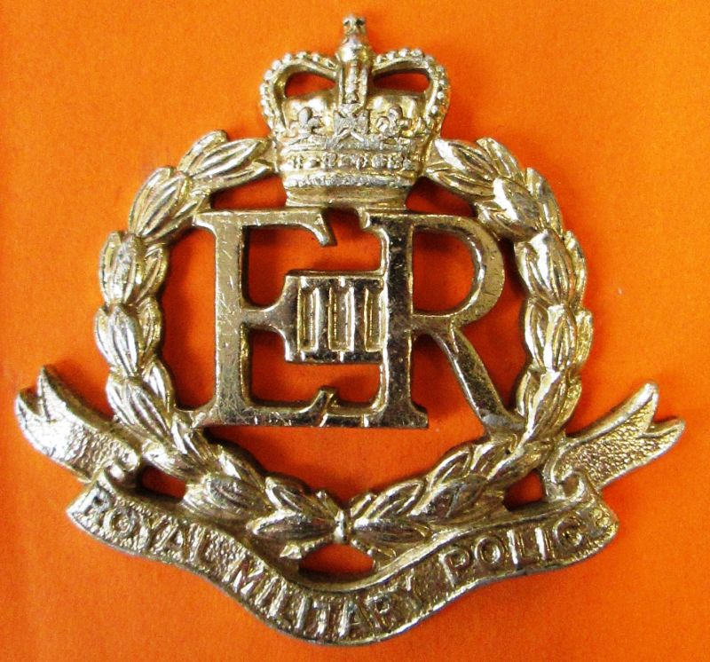 A brit hadsereg katonai rendészeinek jelenleg használt sapkajelvénye, II. Erzsébet névjelével.