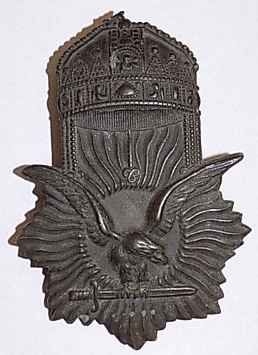 A hegyi sapkával együtt tért haza ez a kivételesen szép csendőr sapka. Az anyaga a tipikus csendőr (a táboribarnánál zöldesebb árnyalatú) posztó, a topán és a rendfokozati jelzés is megfelelő fegyvernemi színű. A darab belül a viselés nyomait mutatja, de kívül kincstári állapotban van.