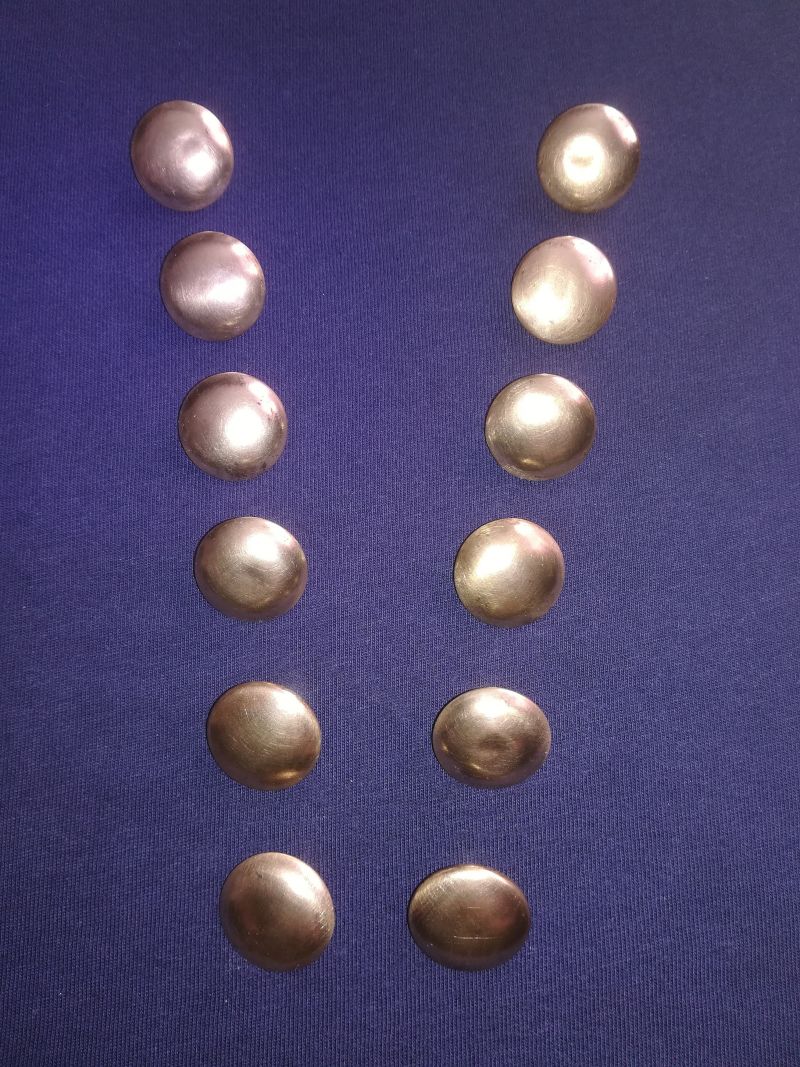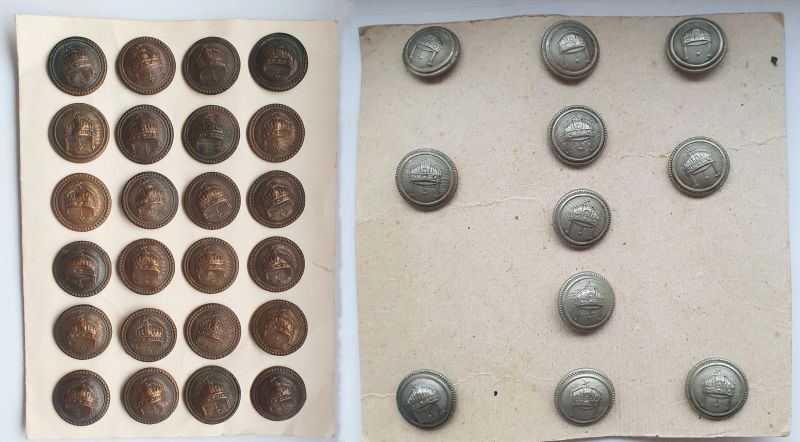 Ez a két gomb-szett a korábban feltöltött monrachiás állományjelzőkkel érkezett. A tiszthelyettesi gombok hátulján felirat: "Tiszthelyettesi gombok Gál Dezső Budapest"