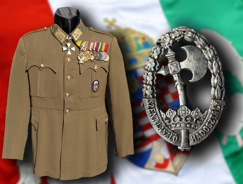 Nagyon szép tartásban került hozzám ez a gyönyörű gyalogos ezredesi zubbony. A kitüntetések csak dekorációk, nem tartoznak a zubbonyhoz. A Szent László Hadosztály Jelvény régi kedvencem, csak a hangulat kedvéért került a képre.