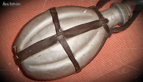 Feldflasche Muster 1909 - 9 M tábori kulacs "barkács" hordszíjjal.