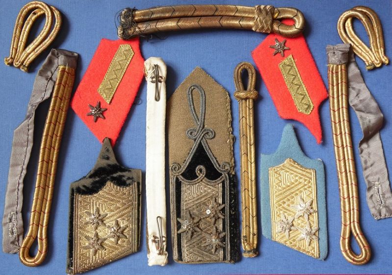 Nem különleges, bár szívesen megtudnám, hogy a sokféle vörös árnyalatot miként különböztették meg, illetve hogyan jegyezték meg anno 100 éve? De a kérdés ennél is egyszerűbb. Miként rögzítették ezeket a lapokat a gallérra? Egyszerűen felvarrták? De akkor miért készítettek külön alátétet a posztó alá?