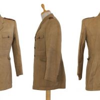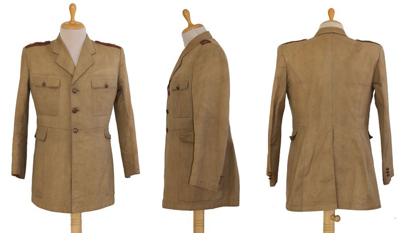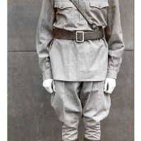 Könnyű nyári viselet. Egyrétegű, bélés nélküli darab, már az előírásszerű Kossuth-címeres gombokkal felszerelve. Kárminpiros posztó alapon három lapos aranyszínű csillagot viselt a tulajdonosa, de nem tudom, milyen százados lehetett az ezen színt viselők közül. Annak idején egy (megítélésem szerint korabeli) növekedésgátlós derékszíjjal érkezett hozzám a tétel, ha ez bárkinek segít valamit a szűkítésben.