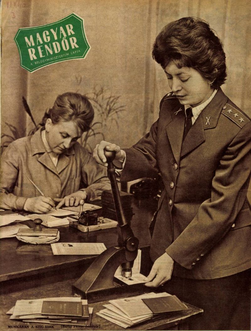 A Magyar Rendőr című hetilap 1964.04.16-án megjelent 15. számának címlapfotóján látható az 1957M női rendőr zubbony. Természetesen nincsenek mellzsebek, karcsúsított. A százados asszony az igazgatásrendészeten dolgozik, éppen a személyi igazolványok fénykép részénél száraz pecsétet nyom.