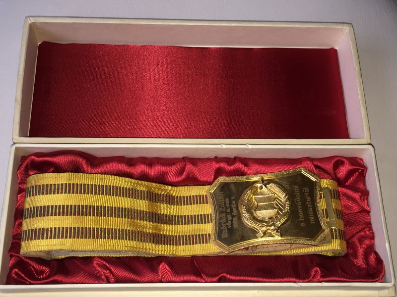 Egészen 1990-ig volt rendszerben. Alapvetően csak a címerrész változott a csaton, a Magyar Köztársaság címerének babér és tölgyfalombbal szegélyezett változata.