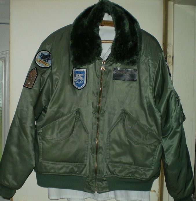 A képen egy nem rendszeresített repülő hajózó pilóta dzsekit látunk.