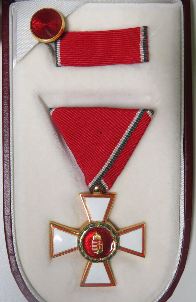 Az 1991. évi XXXI törvénnyel az Országgyűlés újra alapította. Sokan keverik még az elnevezést a lovagkereszttel. Ennek a darabnak a szalagján látszik a miniatűr helye, azaz, eredetileg egy nagyobb fokozat szettjének a része lehetett.
