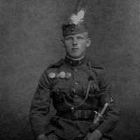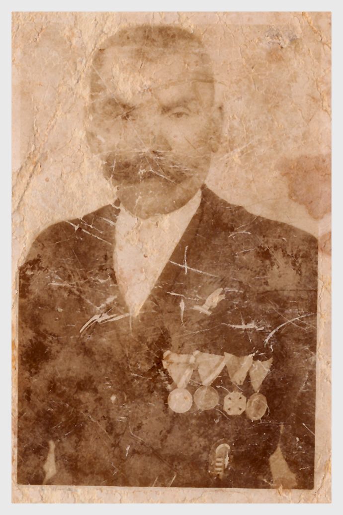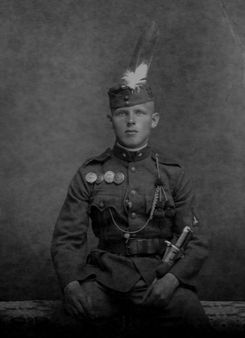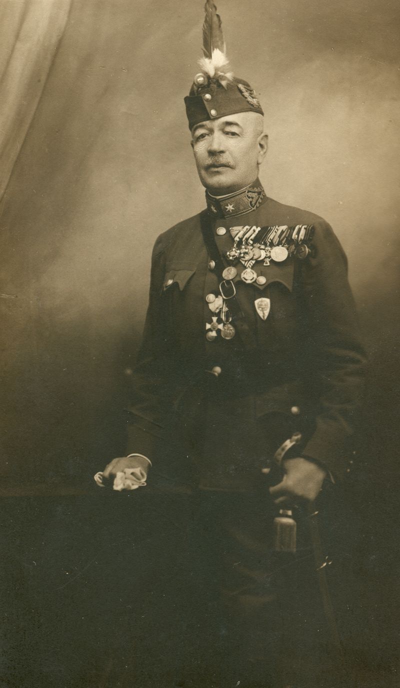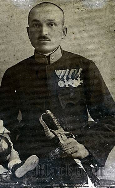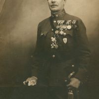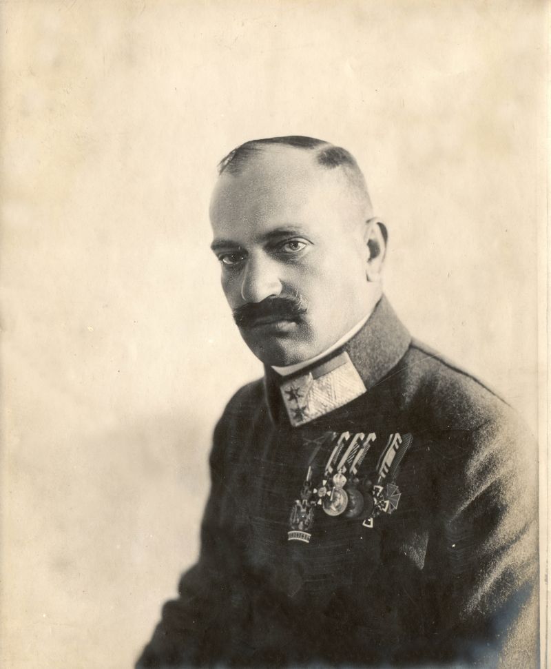 Rendőr fogalmazógyakornok (XI. rangosztály, hadnagy), I. vhs kitüntetéseivel, de MHEÉ nélkül, valószínűleg az 1920-as években.