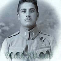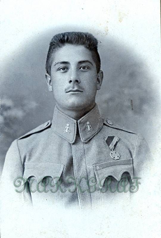 I. Világháborús patrióta jelvény (kereszt) viselve.