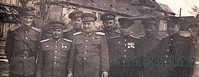 Sajnos az eredeti fotó kissé halovány - ennyit sikerült kihozni belőle. A magyarok a bal szélen álló százados kivételével rendőr (vagy ÁVH...) tisztek, a jobb oldalon két(három?) szovjet tiszt.