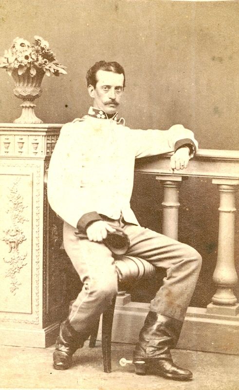 Mivel a felvétel Kőszegen, Lóher Károly fényképész műtermében készült, nagy valószínűséggel az 1863-66 között a városban állomásozó 11. vértesezred őrmestere látható a képen.