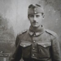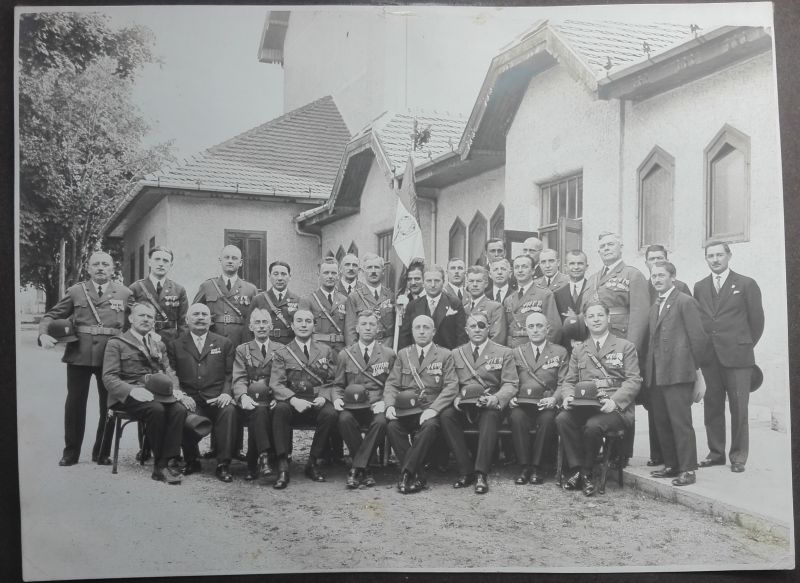 Egy családi fotóalbum része a kép.(Hild család.) Középen a lekötött szemű úr Hild József, harcolt az első világháborúban és később a helyi frontharcosok egyik oszlopos tagja lett, majd részt vett Kárpátalja visszafoglalásában, a fotók tanúsága szerint.