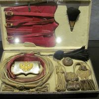 Ízlésesen és praktikusan egy tárolódobozban: zsinóröv, tarsoly, vállszíjas tölténytáska, csákó-vitézkötés, csákórózsa, forgó és kamaráskulcs.