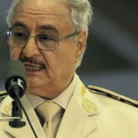 A fotón Halifa Haftár tábornok, líbiai hadúr látható. A szalagsávjai miatt tettem fel, ugyanis kép alapján úgy tűnik, mintha az egész egy rugalmas műanyag lapra lenne nyomtatva.