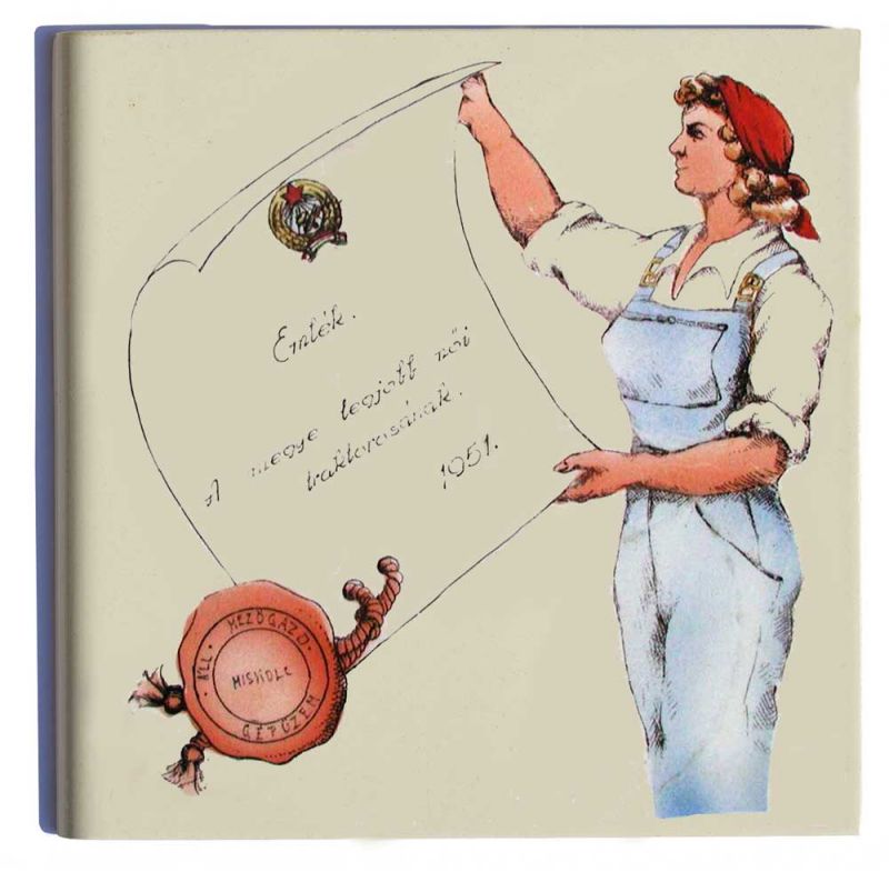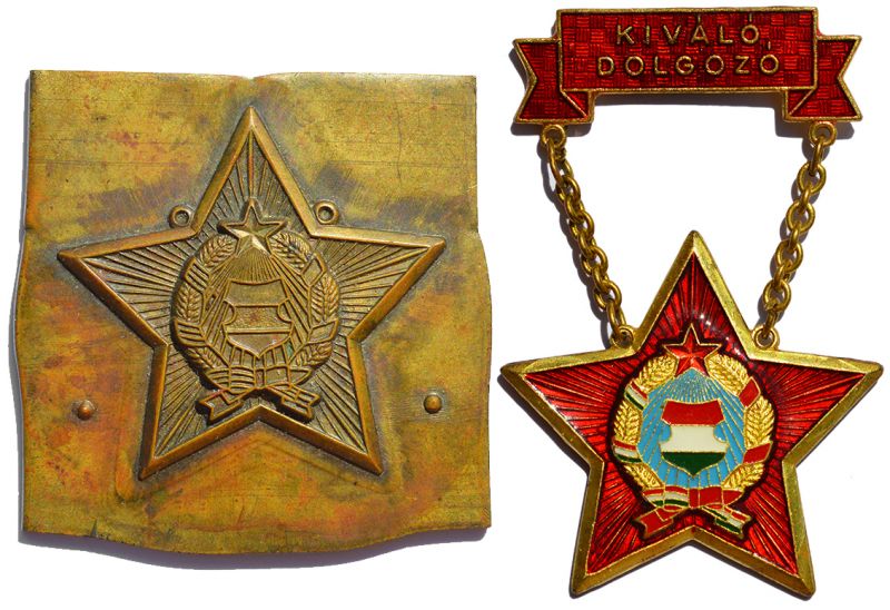 Az elmúlt kor egyik emblematikus kitüntető jelvényének, a "csillagos" Kiváló Dolgozó Jelvénynek az utolsó előtti típusának lapkája és a kész jelvény.