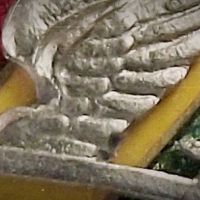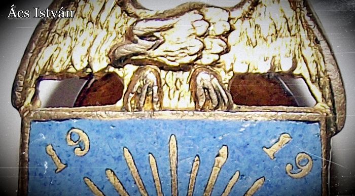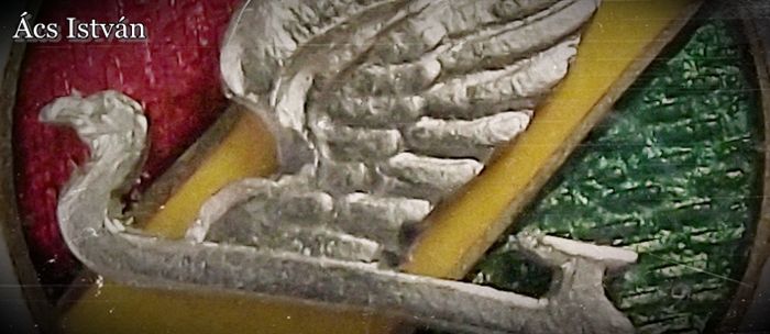 Szép tűzzománcos jelvény, de sajnos zománchibás. A mérete 36X45 mm.
