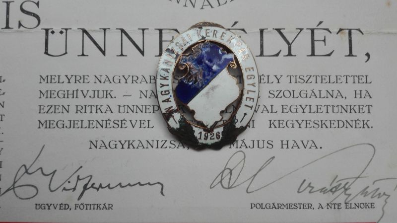 A nagykanizsai Kerékpár Egylet jelvénye 1926