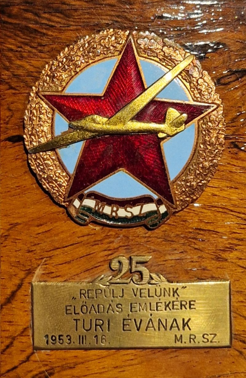 Az emléktárgy megvásárlásakor először csak az MRSZ nagyjelvényére koncentráltam, de mint később kiderült a kis gravírozott emléktábla is sok érdekességet rejtett.