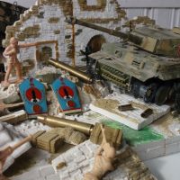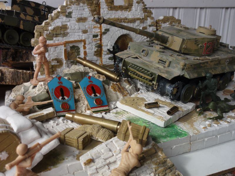 Gondolatban visszatértem a múltba és a saját, általam készített tankjaimmal, felszereléseimmel, két magyar tűzszerész jelvénnyel újra modelleztem a támadás egy részletét.
