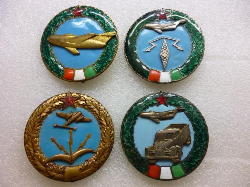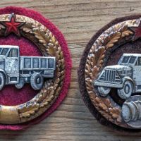 KIváló Gépkocsivezető és Üzemanyagos, kétfajta színű (gépkocsizó, hadtáp) posztóalátéten. Más fegyvernemeknél is kaphattak ezekből a jelvényekből, pl. gyalogságnál, páncélosoknál stb., az ennek megfelelő színű posztóalátéttel?