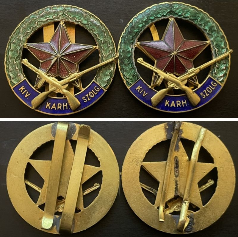 Még az ünnepek előtt vettem egy szatyor szoci jelvényt, szinte vakon, sötétben, csomagtartóból… Valami oknál fogva szeretek így venni dolgokat. Itthon a válogatásnál előkerült ez a két darab. Ha jól megnézitek nem egyforma a “festése”, a gamók sem ugyanolyanok, sőt még a fegyverek kidolgozottsága is más.