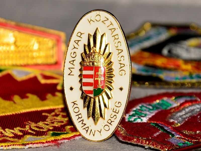 A rendszerváltás utáni kevés belügyi jelvények egyik. A Kormányőrség civilben szolgálatot teljesítő objektumőrei viselték 1990 és 1992 között.