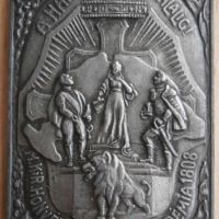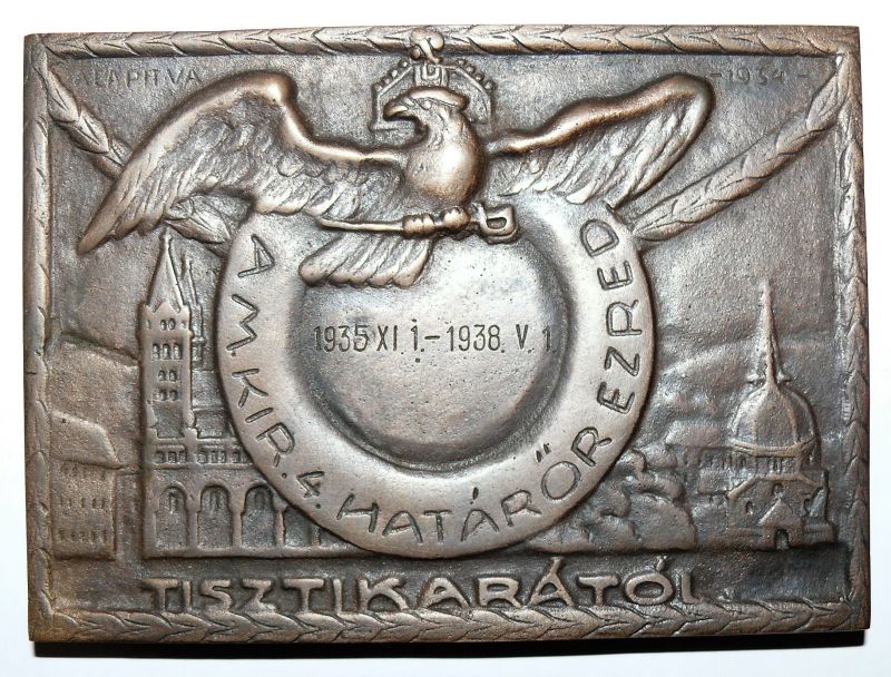 Határőrség emléktárgy Nagykanizsa címerével, benne a jellegzetes várkapuval.