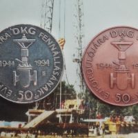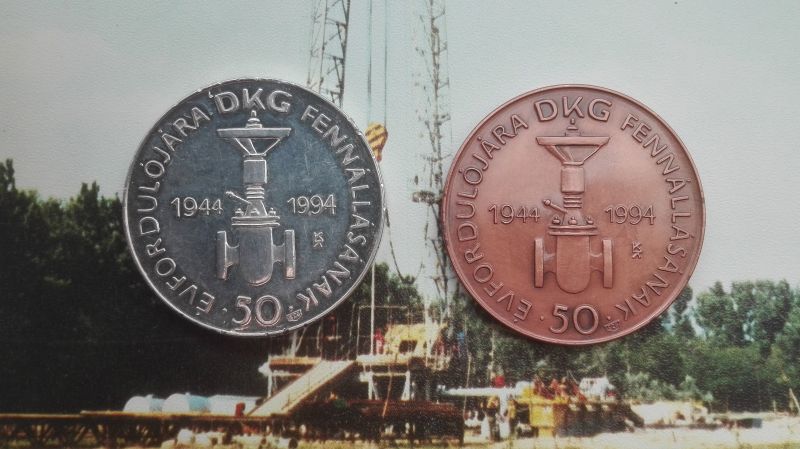 A nagykanizsai kőolajipari gépgyár 50 éves évfordulóra kiadott ezüst és bronz emlékérmei.