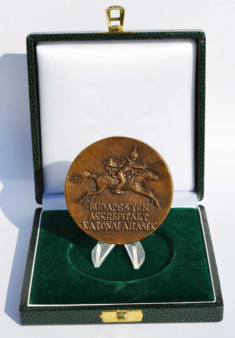 A Magyarországon dolgozó külföldi katonai attasék testületének emlékplakettje.