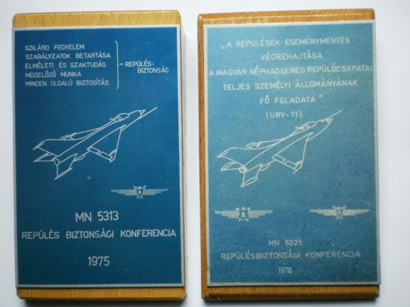 Fém lemez fa talapzaton az alján zöld illetve fehér posztóval.MN 6025(1.Honi légvédelmi hadsereg parancsnokság Budapest), MN 5313(1.honi légvédelmi hadosztály parancsnokság Veszprém).