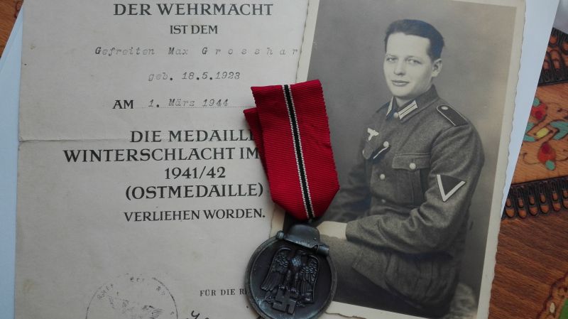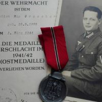 Német téli hadjárat kitüntetés, adományozóval és a kitüntetett fotójával.(saját gyűjteményi a szett).