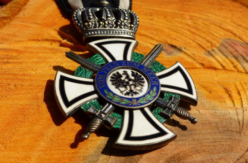 Hazai gyűjtői körökben kevésbé népszerűek az I.Vh.-s német kitüntetések. Ezek egyik szépséges darabja a képen látható Hohenzollern Hausorden Ritterkreuz.