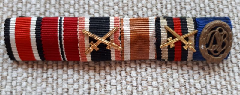 EK2, "fagyott hús", kardos KVK, Nyugati Fal, Hindenburg, szolgálati, utóbbin a sportjelvény miniatűrje. A sor alapján egy hivatásos tisztes, esetleg tiszthelyettes, aki már az első világháborúban is részt vett, és a másodikban sem tejbegrízt főzött a konyhán...