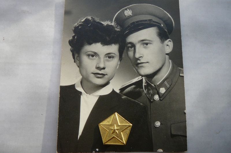 Végre sikerült egy olyan fotót szereznem, amin a fém poltiszti állományjelző van. A kép 55-ben készült. Valószínűsíthető, hogy ebben az időszakban, már nem a hímzett karfelvarrót használták.