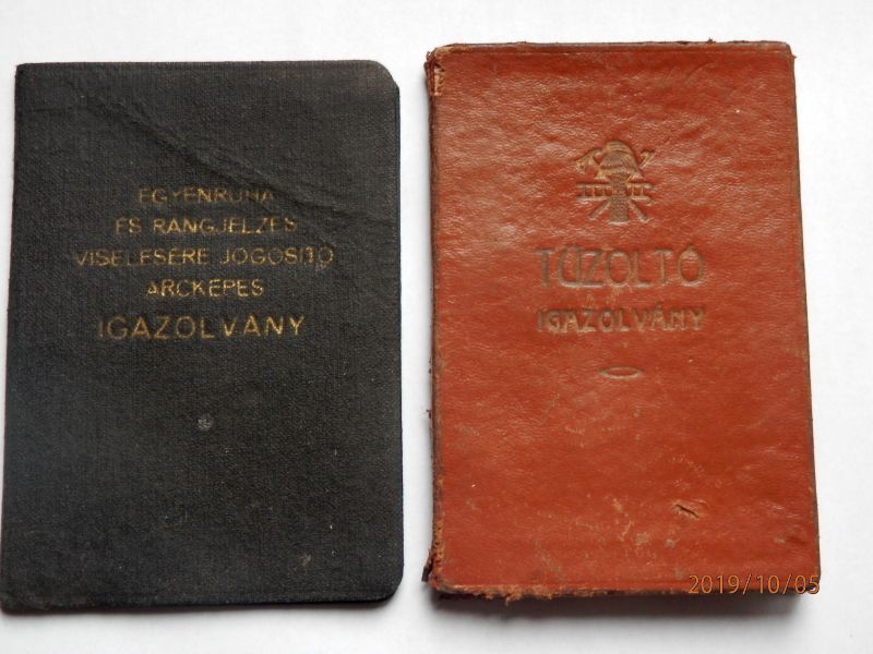 Tűzoltó igazolvány 1938-as.