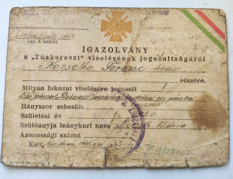 Érdekessége, hogy nincs teljesen kitöltve. Nincs évszám, fénykép, felszerelési jegyzék is üres. Mintha gyorsba kapott volna egy igazolványt az illető.