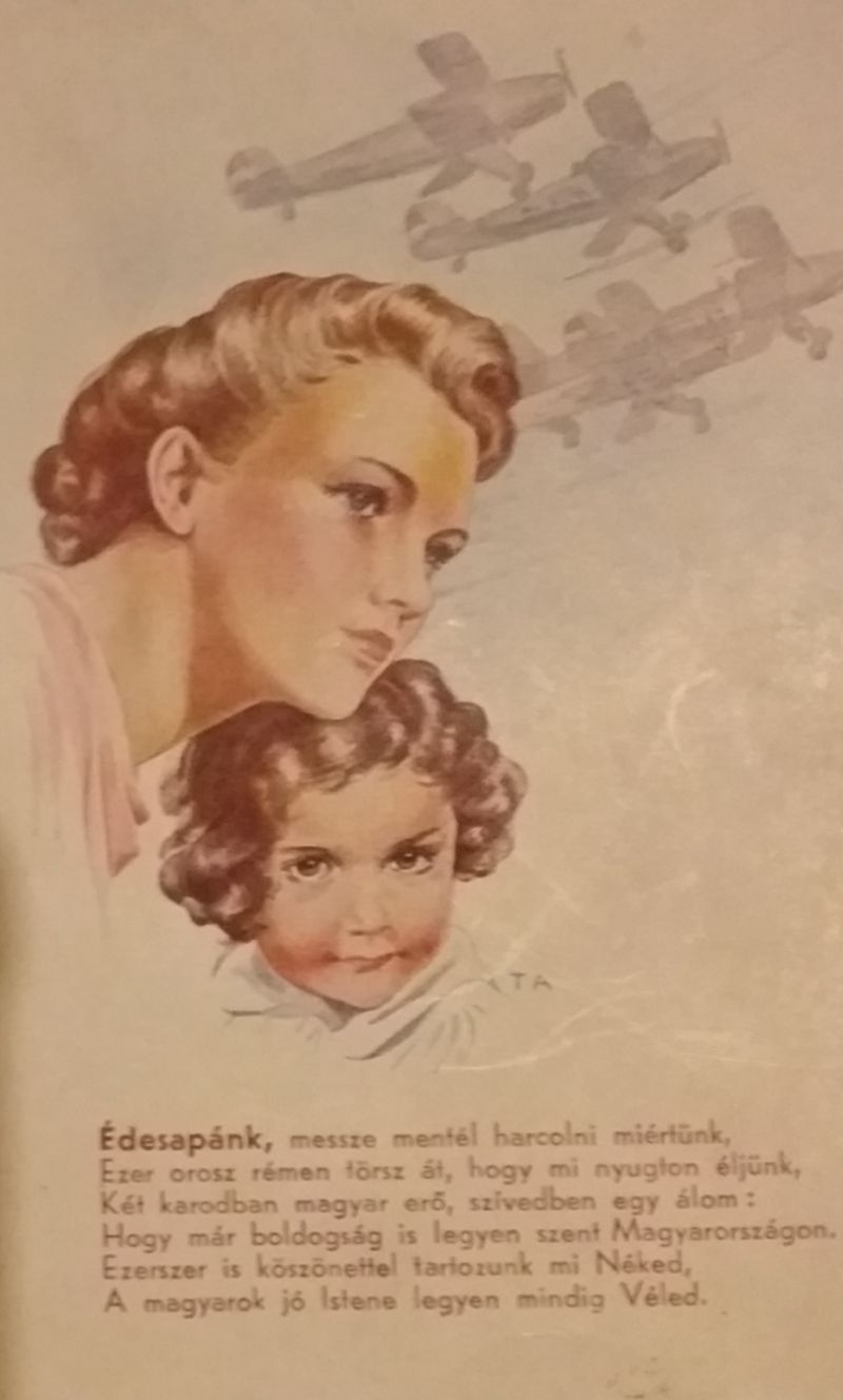 A II. világháború alatt kiadott képeslapok. Hazafias versikével buzdította az orosz fronton lévő katonákat.