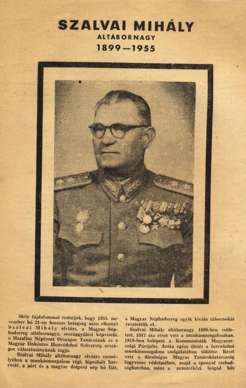 Szalvai Mihály altábornagy halálára kiadott emléklap