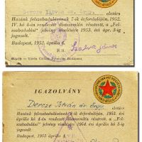 Az igazolványok (adományozók) tulajdonosa, egy ÁVH határőr ("zöld ávós") őrnagy, 1952-ben és 1953-ban részt vett a díszszemléken. A jelvények egy éven át - a következő díszszemléig - voltak viselhetők, mint olvasható.