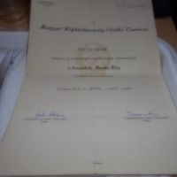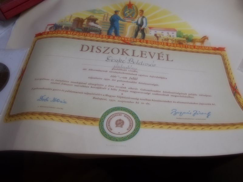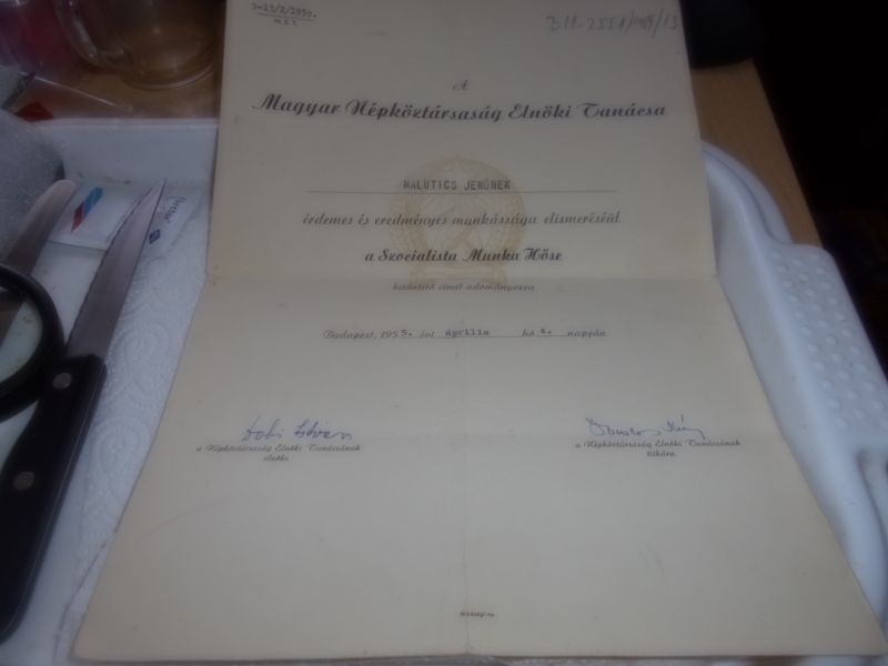 Részben kitöltetlen, részben fényképes kitöltött igazolványok, osztályos jelvényekkel.
