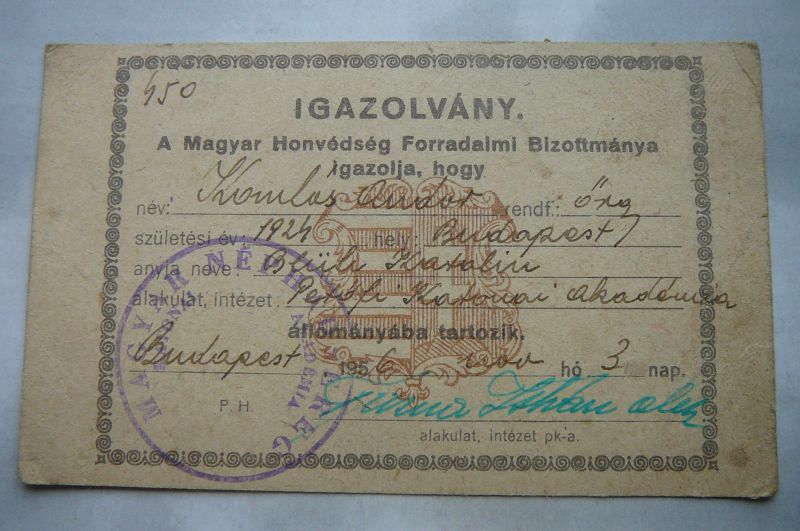 Nincs a dologban semmi különleges, mégis nagyon fura ez a bejegyzés a katonakönyvben. Mit látunk? Egy katonakönyv két oldalát, amely a könyvecske beosztása és a bélyegzők tanusága szerint az 1970-es év környékén került kiállításra. Nekem is van ilyenem, a sajátom.