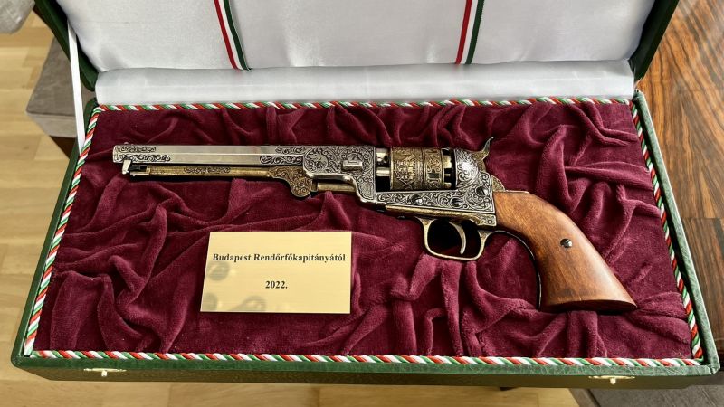 10 éves együttműködésünk emlékéül kaptam a BRFK vezetőjétől Terdik Tamás tábornok úrtól. Replika, annak a Colt Navy-nek a másolata, amelyet Kossuth Lajos kapott 1852-ben személyesen Colt-tól.