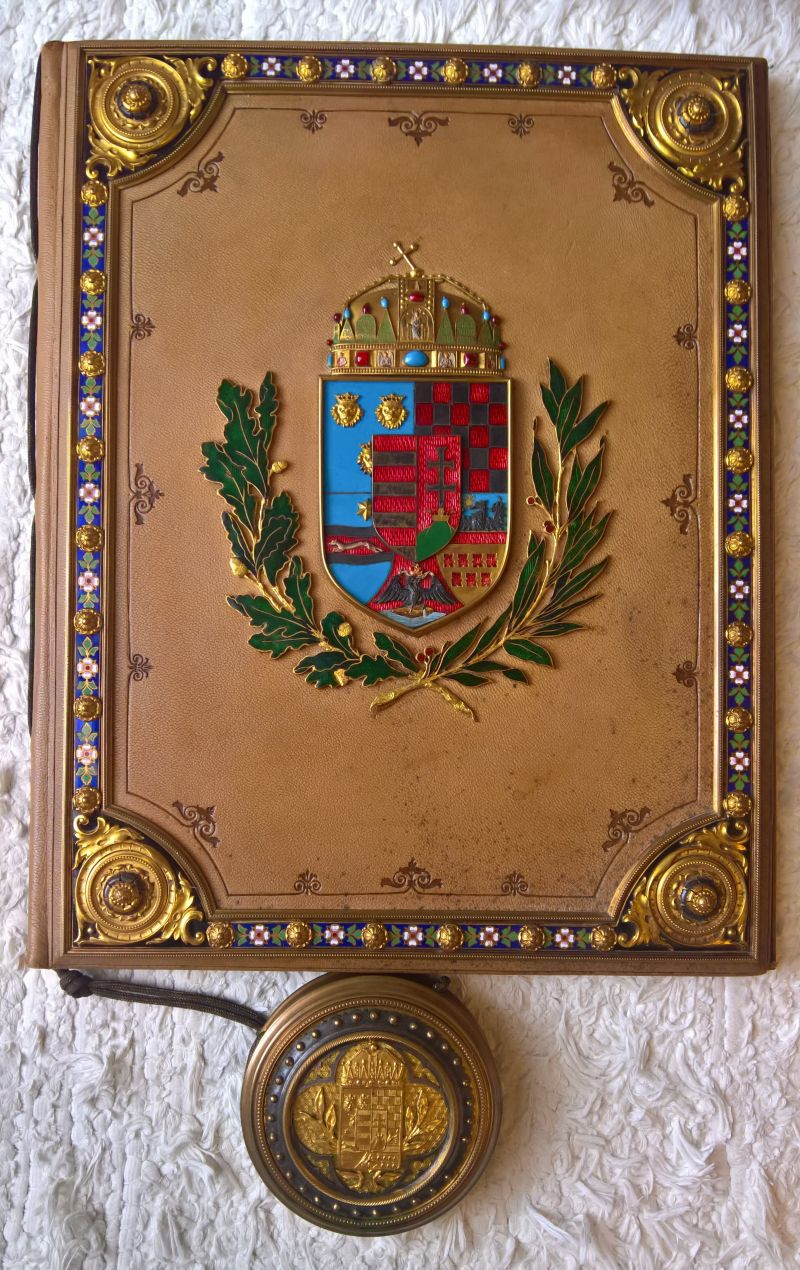 Rézlábokon fekvő, cápabőr, drágakövekkel kirakott, kinevezési dísz aláíró mappa, szárazbélyegző tartóval (csak a tartó van meg, maga a bélyegző hiányzik). A szakértő szerint a szárazbélyegző megléte miatt, hivatali kinevezéseknél használták ünnepélyes keretek között. (Magánvéleménye szerint, miniszterelnöki vagy parlamenti kinevezési aláíró mappa lehetett).