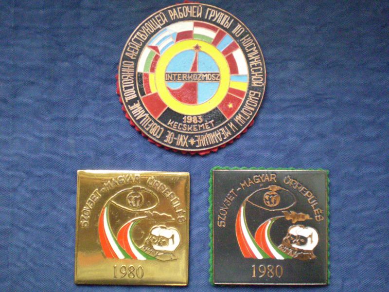 Most kerültek hozzám csere útján. A kör alakú plakett valamilyen konferenciára készült vajon? A szögletes űrrepülés plakettekből rendelkezem arany és bronz színűvel, de láttam már ezüstöt is. Ennek lehetett jelentősége vagy csupán emléktárgyként változatosan készítették őket?