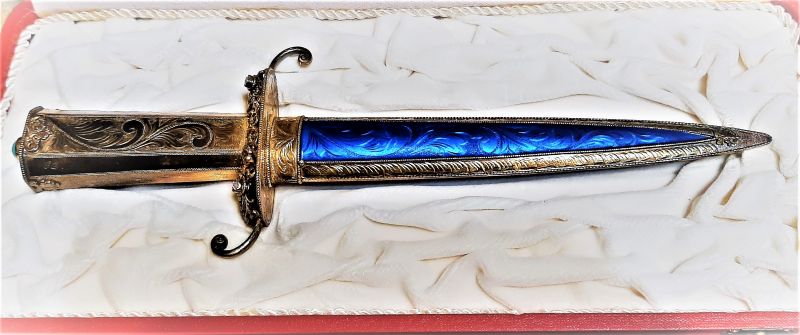 Ékszer szépségű, ezüst anyagú, türkizzel és gyöngyökkel díszített dísztőr a Belügyminisztertől 1988-ból.
