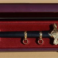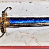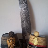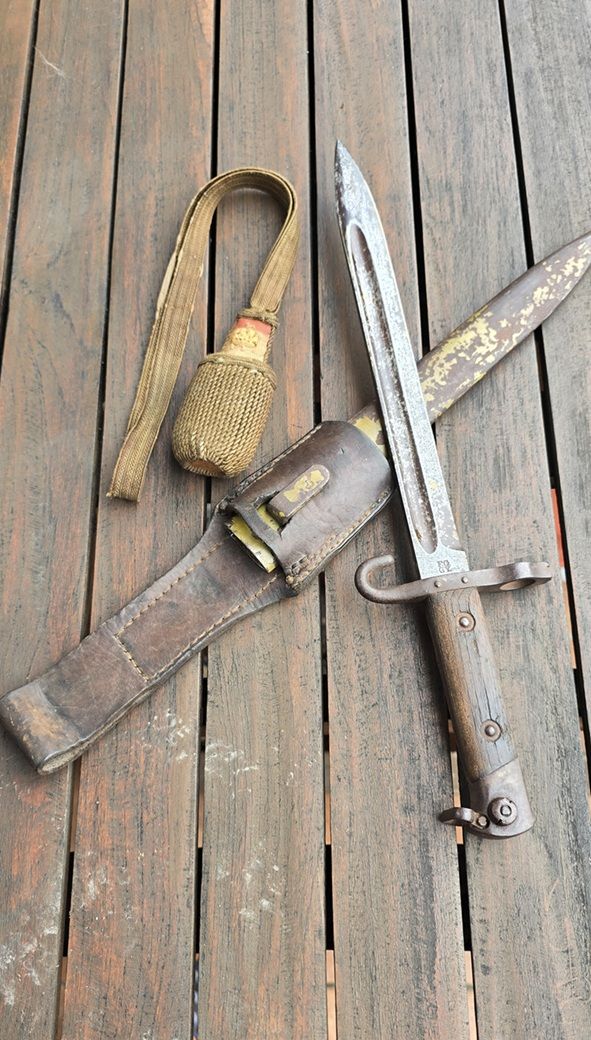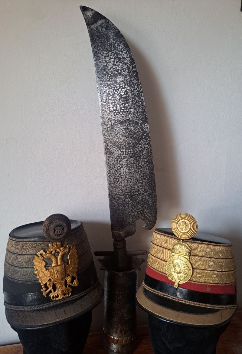 Egy munkatársamtól kaptam ajándékba, alacsony sorszámú. Siófokról került hozzám. A pengét nem kímélte az idő, de akadás nélkül visszamegy a hüvelyébe. Sajnos a csatlék nem került elő.