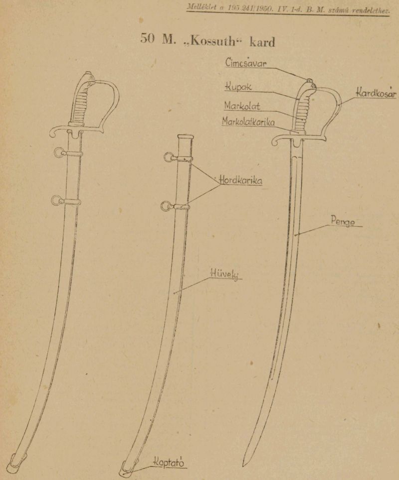 (1) A rendőrség részére a mellékletben feltűntetett ábra szerint 50. M. „Kossuth" kardot rendszeresítem.
