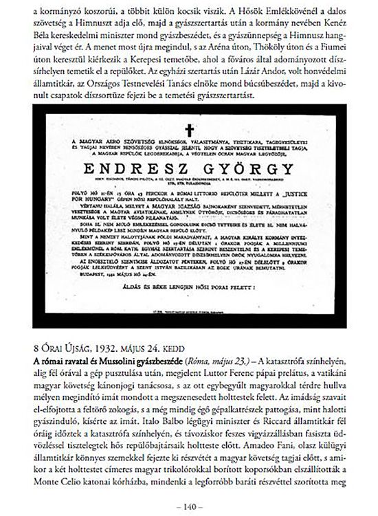 A harmadik és negyedik fejezet Arlett Tamás nevéhez kötődik. Az óceánrepülést és a római katasztrófát a korabeli magyar sajtóban megjelent írásokból válogatott részek ismertetik az olvasóval.